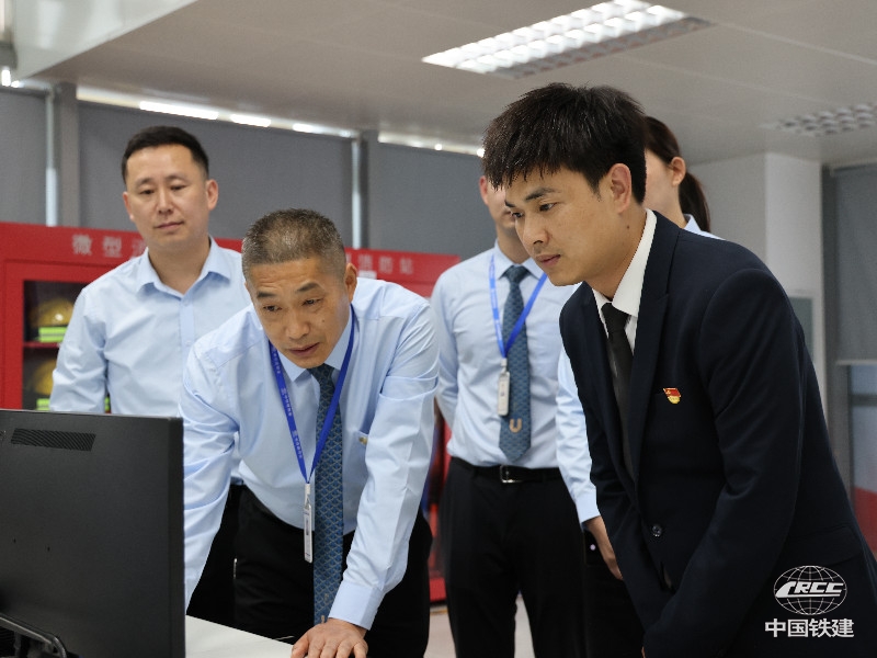 張鑫(右一)檢查高端商寫項目智慧系統(tǒng)(中鐵建物業(yè) 供圖)